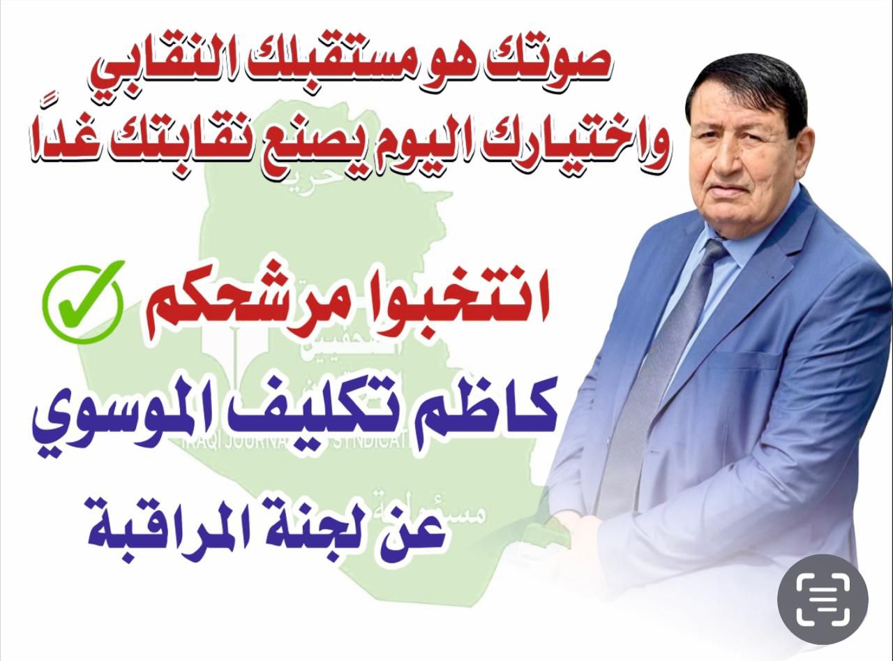 يشرفني أن أطرح اسمي أمامكم مرشحًا لعضوية لجنة المراقبة في انتخابات نقابة الصحفيين العراقيين، المزمع إجراؤها يوم الجمعة الموافق 6/2/2026.